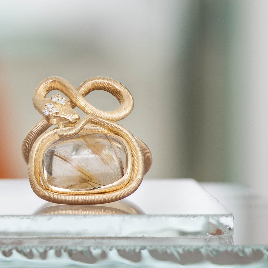 Som alle smykker fra OLE LYNGGAARD COPENHAGEN er Snake kollektionen udført i 18 karat guld med stor sans for detaljen. Hvert smykke er et resultat af omhyggeligt håndværk, hvor præcision og æstetik går hånd i hånd. Diamanter og ædelsten er nøje udvalgt og placeret, så de fremhæver slangens bevægelser.